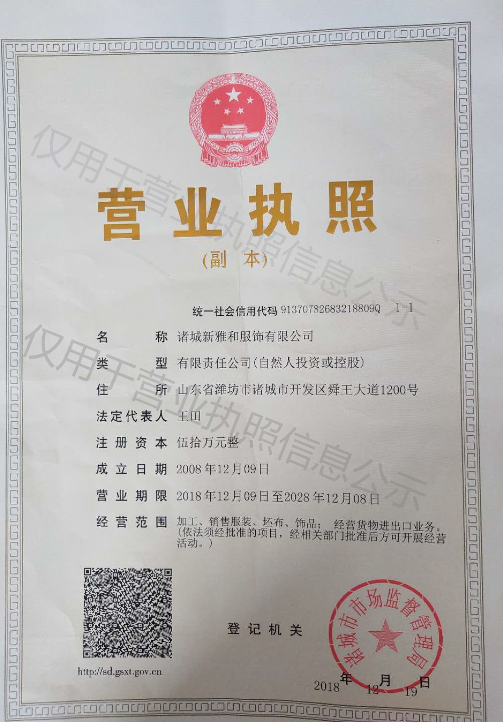 諸城新雅和服飾有限公司是一家擁有自營進出口權(quán)、集貿(mào)工一體的現(xiàn)代化針織服裝加工出口企業(yè)。公司座落在諸城開發(fā)區(qū)橫四路北206國道以東。公司現(xiàn)有現(xiàn)代化日本進口電腦縫制設(shè)備200多臺套,職工300人,年出口創(chuàng)匯1000萬美元。公司擁有一個團結(jié)務實、業(yè)務嫻熟、反應迅速、年輕化、現(xiàn)代化的管理團隊。